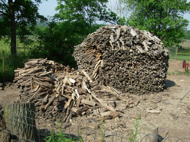 The door in the middle is the oven and the round black thing on the door is the thermometer. The box hanging off the right is the water tank which can be kept full of water to heat for washing. In this stove, which has a rather small wood box, about every 20 minutes more wood must be added and after about 30 minutes with a nice strong fire you can close the vent and heat up the oven. We got it to over 500 F pretty fast the other day and had to lower the temperature to bake some biscuits and later some rhubarb from the garden. I haven’t baked anything that needed a steady temperature for a long amount of time yet but with a little practice, and a big wood pile, it wouldn’t be too hard. Now I just have to see if there are some tricks to chopping the wood!